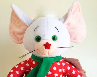 Christmas Starwink Mouse, Stuffed Animal, 1991, Star Pajamas, Venture Stores, Vintage Plush, 12"