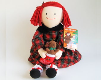 Madeline Doll, Genevieve Dog, Christmas ornament, Christmas Stocking, Eden, 1990s Toys, Tartan Dress, French Girl