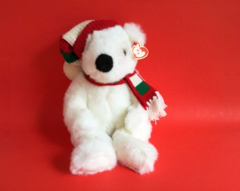 Christmas Teddy Bear, TY, 1997 Holiday Bear, Toboggan Hat & Scarf, Beanie Buddy, 15"