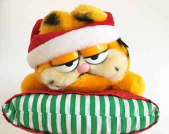 Christmas Garfield, Santa Hat, Striped Pillow, Dakin, 1980 Toys, Vintage Christmas