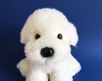 White Puppy Dog, Stuffed Animal, Dakin, 1985, Vintage Plush, 1980s Toy