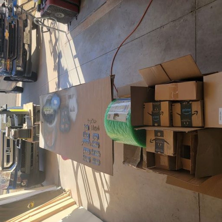 Our shipping area is also where we do a lot of our painting and staining. We recycle boxes to help keep costs down. -