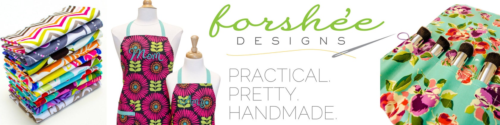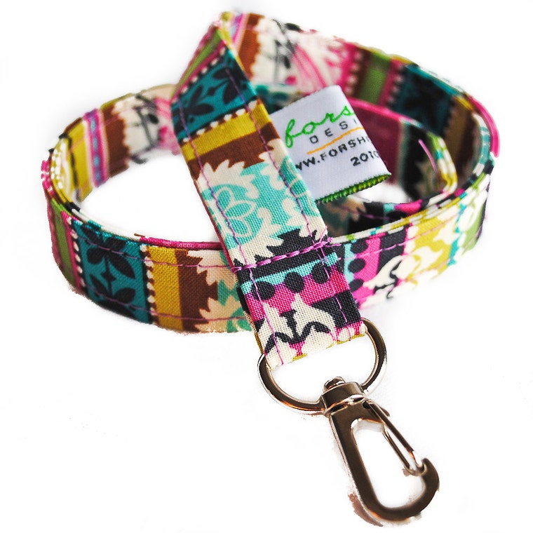 Welcome to Forshee Designs! We use the most colorful, bright and fresh designer fabric to make our lanyards, camera strap covers, purses, wallets, & aprons.