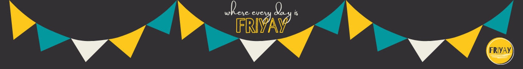 Welcome to a place where every day is FRIYAY -- where it feels like five o'clock, the freakin weekend, an awesome vacation, a stress-free celebration, and a drink with two umbrellas all wrapped together in a warm hug. Or you know, whatever gives you all the Friyay-feels.