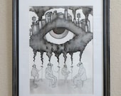 I’ve incorporated conspiracies via symbols, metaphor and innuendo into some of my art. The first conspiracies that show up in my art are about 9/11, propaganda and mind control, and investigator Danny Casolaro’s Octopus, (which still shows up in my art frequently). In late 2009 and 2010, a lot of my art had Masonic and the All Seeing Eye of the infamous Illuminati that pop culture has embraced so firmly since then. I’ve been updating my website and have added a section for Conspiracy Inspired Art where I’ll be adding influences for each piece in the coming weeks. In 2010, I created a Conspiracy ABC’s sketchbook for The Brooklyn Art Library Sketchbook project that’s also on my website.