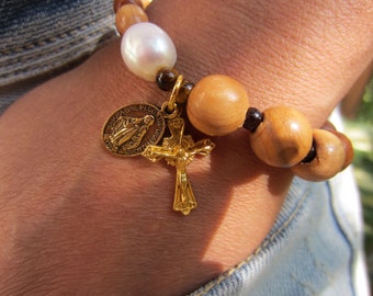 We are a mother-daughter team. We handcraft a variety of religious jewelry for you to love and cherish. We create unique gemstone rosaries and olive wood rosaries from Nazareth, gemstone chaplets, First Communion bracelets, Wedding Accessories, and wearable jewelry for men, women and children.