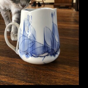 Wonderful, delicate porcelain form and great drippy glaze! Lovely color combo. I love it! It is just the right size and fits the hand well. And the little extra is a nice touch! Thank you Caitlin! ❤️