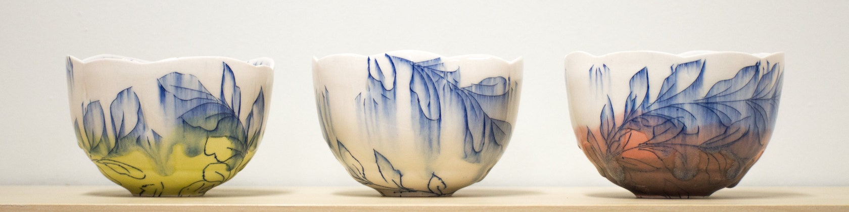 I'm a slipcaster by trade and I work from prototypes I first throw on the wheel and then take a mold of. By limiting myself to a series of forms I have more headspace to explore the interaction of form, surface treatment, and function.