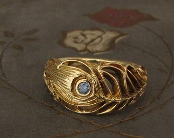 Peacock Ring with Blue Diamond (14K) Made to Order