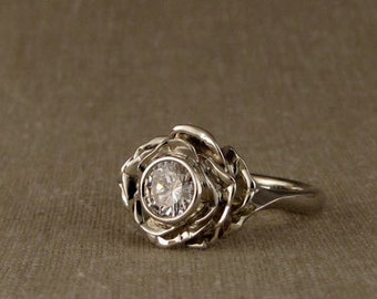 Elegant Solitaire Engagement Ring (14K white gold) - Made to Order