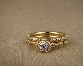Victorian Solitaire and Wedding Band Set (14K) Made to Order