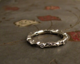 Scattered Ginkgo and Diamond Wedding Band (14K) Made to Order