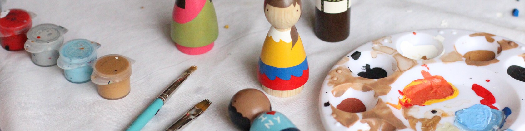 In 2011 we decided to take a step towards establishing a fair trade agreement with a carpenter from Bogotá, Colombia (where Juan is from). Hoping to make a difference in a world full of impersonal mass-produced craft supplies, we began having new doll shapes and sizes built, hand chiseled on the wood lathe in a small shop. The dolls are made from Urapán, a sustainably forested wood // where one tree is used, two are planted. In the fall of 2011, we hired a young Colombian artisan to paint our in-stock items and have since trained and hired 3 more artisans to help us with our wholesale standard designs. We are happy to say that each and every doll has its own personality, carved by an artisan we know by name and whose hand we’ve shaken.