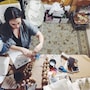 Bringing our son to visit our carpenter in Bogotá.