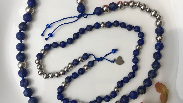 Spiritual Journey 54+54 lapis & stainless steel mala, made to share with my long lost love, when we meet again. -