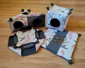 5 out of 5 starsSo impressed with the pet hammocks we received. Beautiful looking and feeling fabric and very well made, look like they will stand the test of time. Well designed they are a good size for our rats to get in/out and be cozy and comfortable. We were looking for something that looks good, keeps our rats feeling safe and comfortable and was easy to keep clean and we certainly found it. Thank you for sharing your talents, we appreciate it!