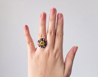 Her Sweet Embrace specializes in miniature cross-stitch jewellery such as cross stitch rings, cross stitch earrings and embroidery necklaces and brooches that are one of a kind.