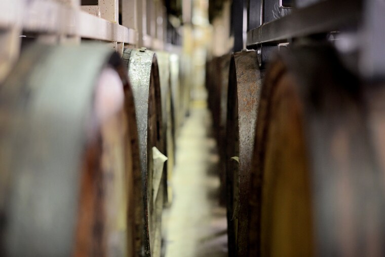 Bourbon barrels at Red Brick Brewing in Atlanta, Georgia.