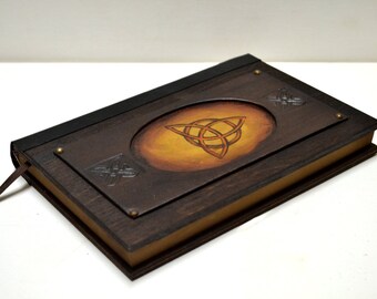 Wooden art, journal sketchbook, alternative book, wooden book, spell book, custom journal, blank page journal, trinity symbol prayer journal
