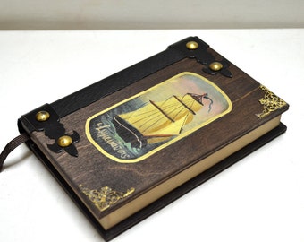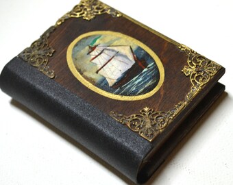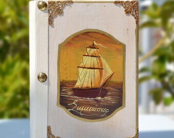 Note Book, Wooden book, Travel notebook, Marine décor, Old ship, Navy theme, Hand painted ship, Sea lovers, Ship Journal