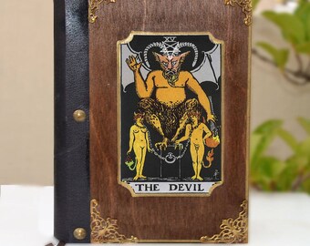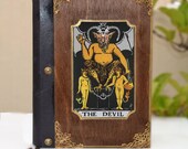Leather book, Book of shadows, tarot card, tarot art, fortune teller, illustration journal, tarot print, Devil Book, Dark themed journal