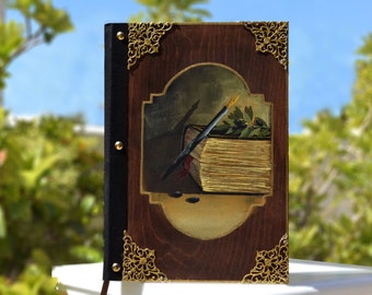 Journal, Notebook , hand painted journal, blank notebook, handmade journal, personalized journal, wooden cover
