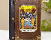 Embroidered art, leather book, poetry book, tarot card, tarot art, fortune teller, illustration journal, tarot print, The lovers tarot