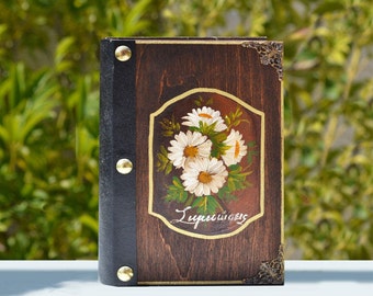 Journal, notebook, floral journal, flower theme, wood cover journal, vintage journal, vintage diary, hand painted flowers