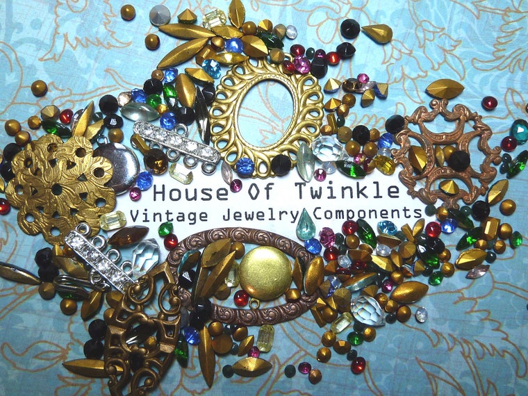 All mixed up, vintage rhinestones and stampings, I love this photo. -