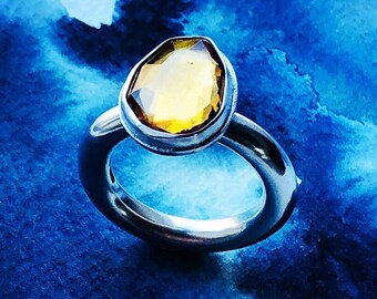Citrine statement ring with sterling silver