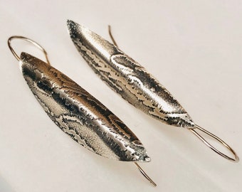 Split pod silver dangle earrings by Cari-Jane Hakes, Hybrid Handmade