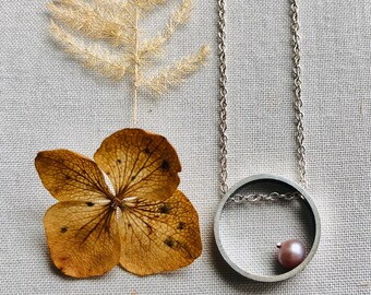 A special commission - 60th Birthday Necklace, silver, pearl, hydrangea petal.