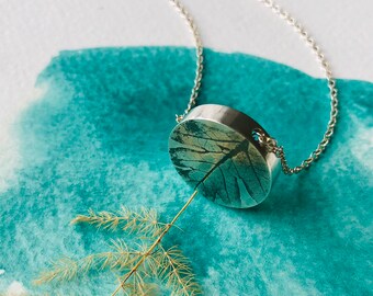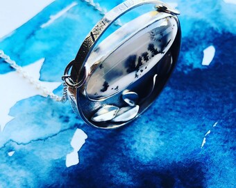 Dendritic opal pendant, winter trees and leaves necklace.