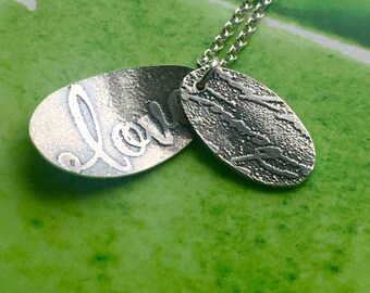 Love silver etched necklace
