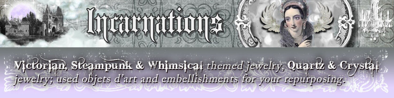 Besides the jewelry, I am a mixed-media collage/altered artist with Gothic, Victorian, Steampunk and Whimsical themes. I take cemetery photography and create digital graphic arts with a dark theme.