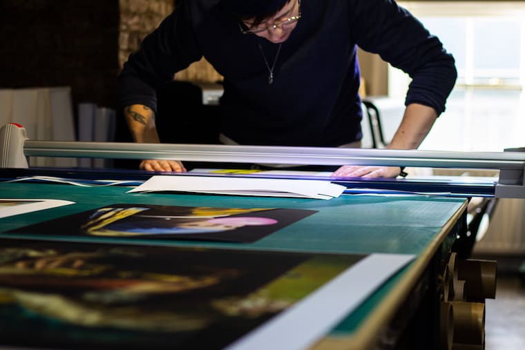 Each print is cut by hand before being checked for perfect quality before it is securely packed. -