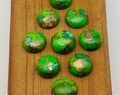3 van 5 sterrenDe 'groene koper-turkoois' stenen hebben meer een doffe erwtensoepkleur dan het levendige groen op de afbeelding. Ze contrasteren sterk met de 10 mm stenen die ik kocht, en die waren fantastisch.