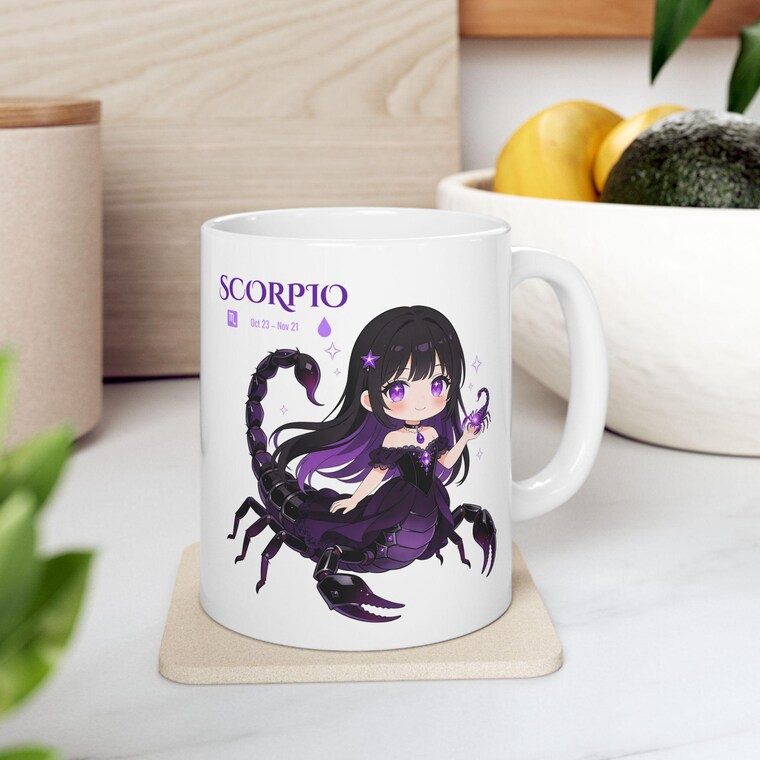 Cute anime astrology coffee mug for Scorpio lovers ✨ -
