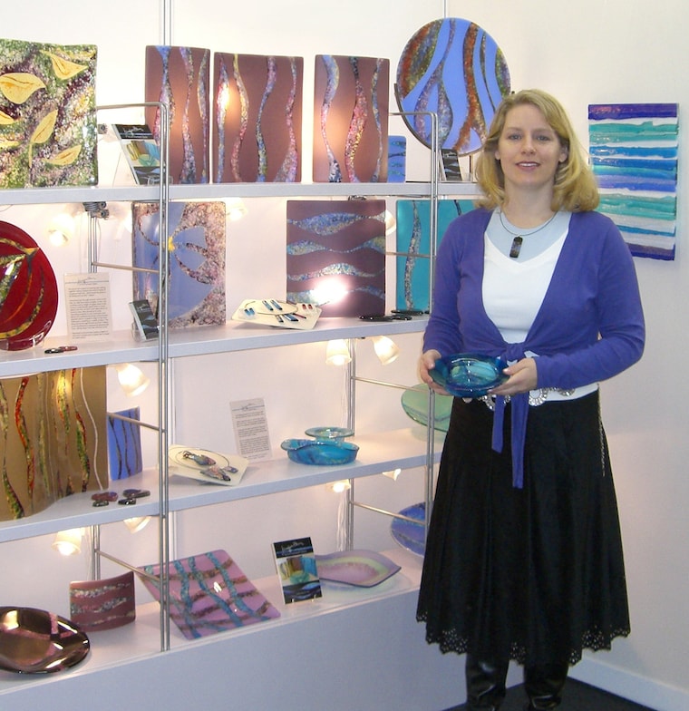 Here I am, at a tradeshow a few years ago, showing my kiln-formed work. I still do commission work like this! -