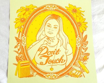Susan Art Print 12.5x12.5 / Don't Touch / Hand Screenprinted Silkscreen Yellow Orange / Feminist Art Gift