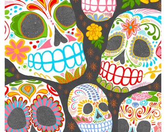 Calaveras Day of the Dead art - 9x12 print - Dia de los Muertos