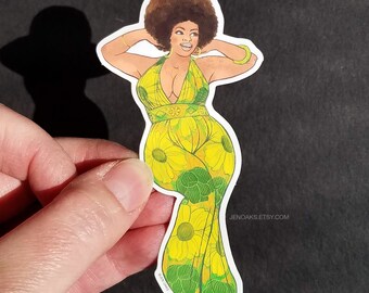 Green Flowered Curvy Babe Die Cut Vinyl Sticker