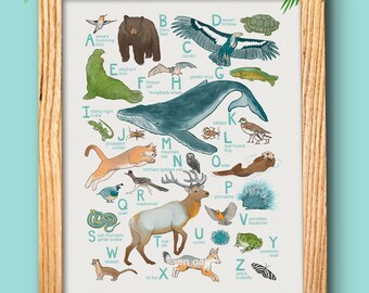ABC Animal Print - 13x19 print - baby kids nursery art, California whale fox quail "California Animals"
