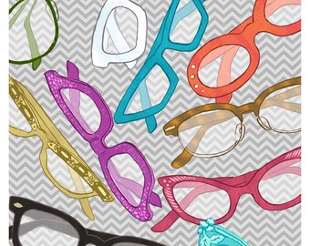 Vintage Glasses art - 9x12 print - cat eye glasses