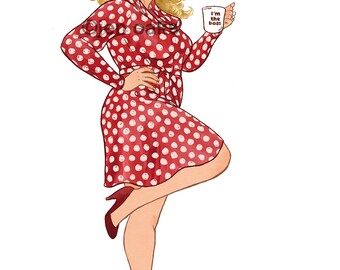 Curvy Pinup - 8x10 art print / Boss Lady blonde, curvy, bbw, body positive, polka dot office dress Diane von Furstenburg