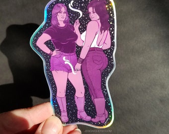 Smoking Babes Holographic Die Cut Vinyl Sticker