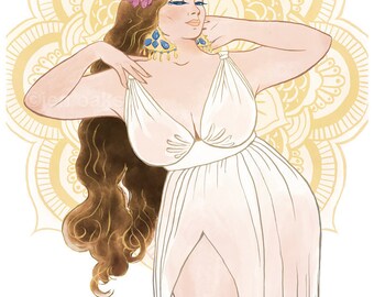 Curvy Pinup - 8x10 art print / fat, bbw, body positive, mystical goddess babe, flower crown mandala