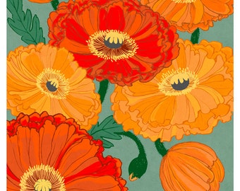 Bold Poppies art - 9x12 print