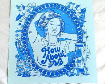 Jasmine Art Prints 12.5x12.5 / How About No / Hand Screenprinted Silkscreen Royal Sky Blue / Feminist Art Gift