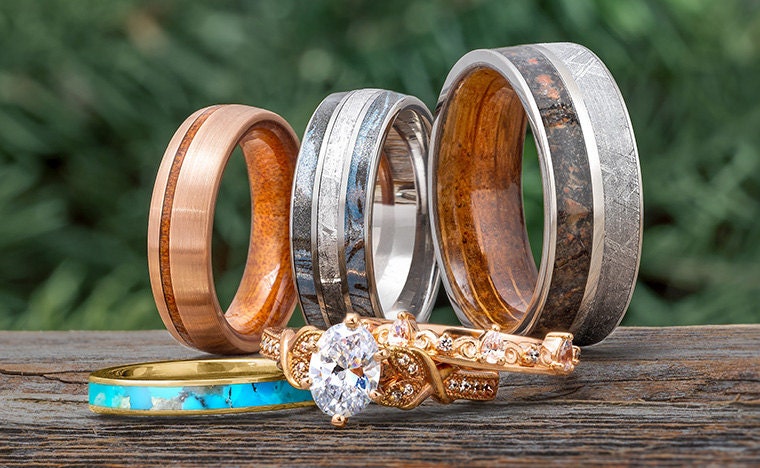 Unique Men's Wedding Bands, Custom Engagement Rings, Meteorite Rings, Dinosaur Bone Rings, Wood Rings, Antler Rings, Custom Jewelry